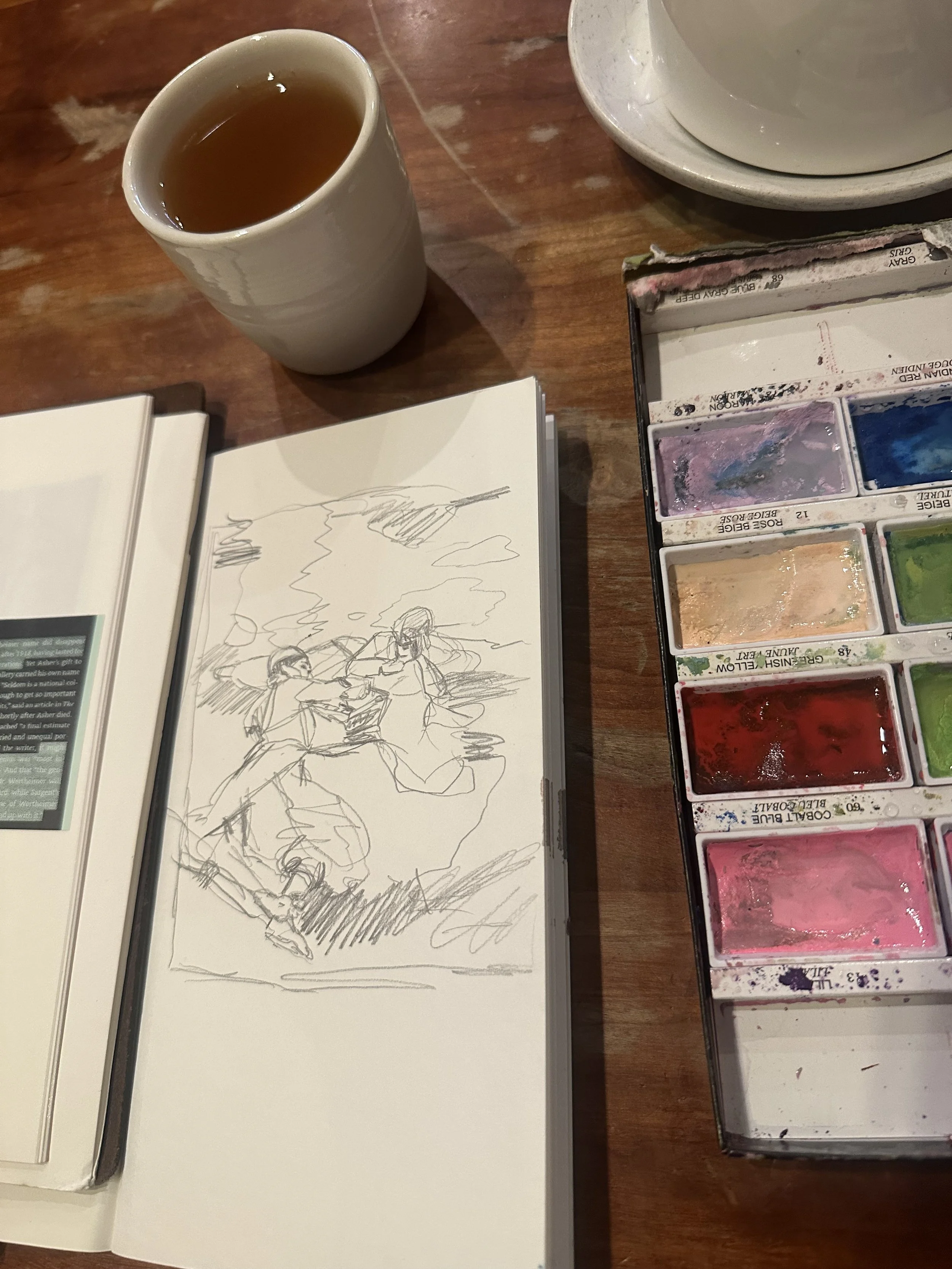I tried to focus on the lines that I saw and how to remember that in the painting later on. The sketch isn’t my favorite but I learned a lot from it, so it served its purpose.