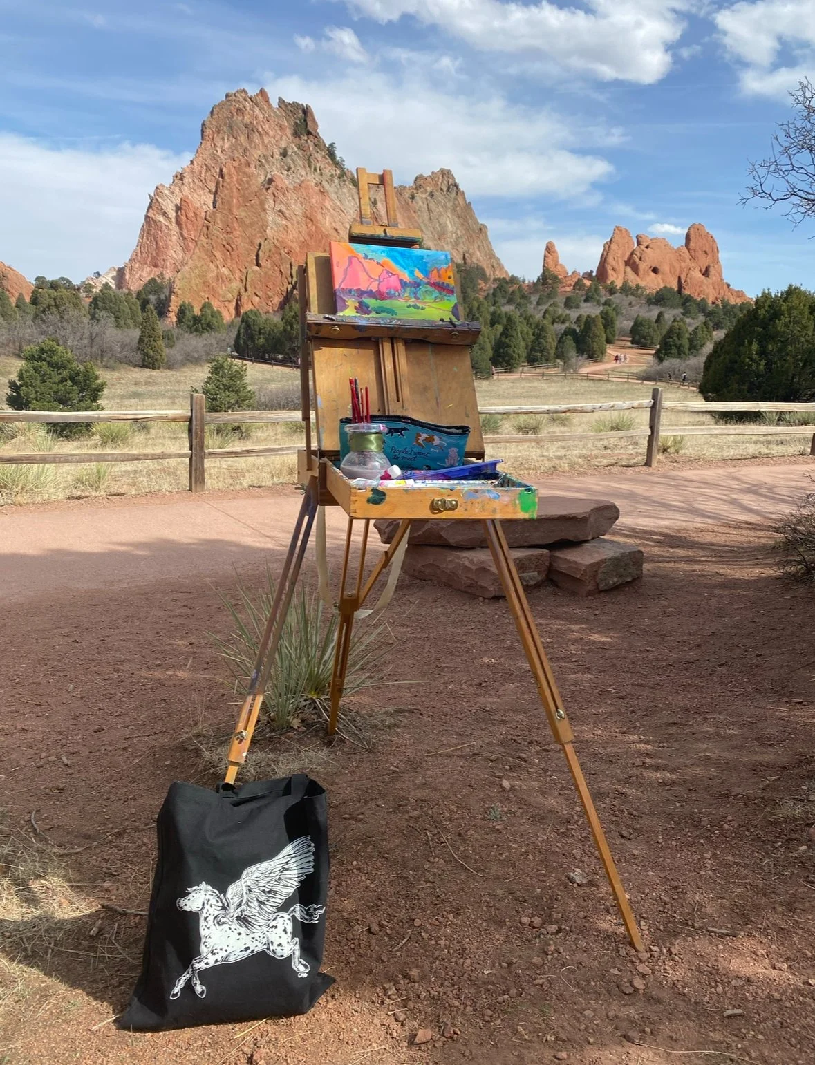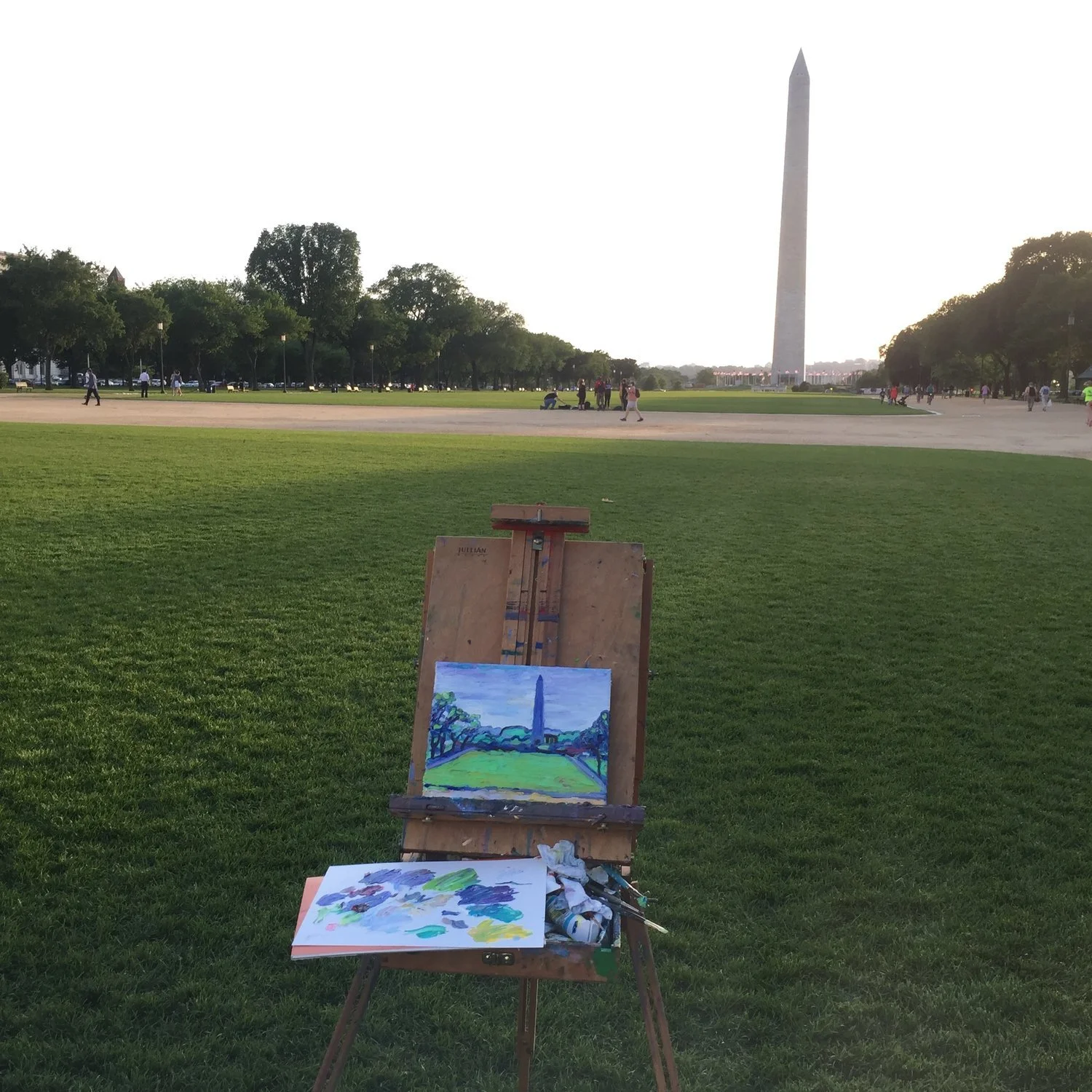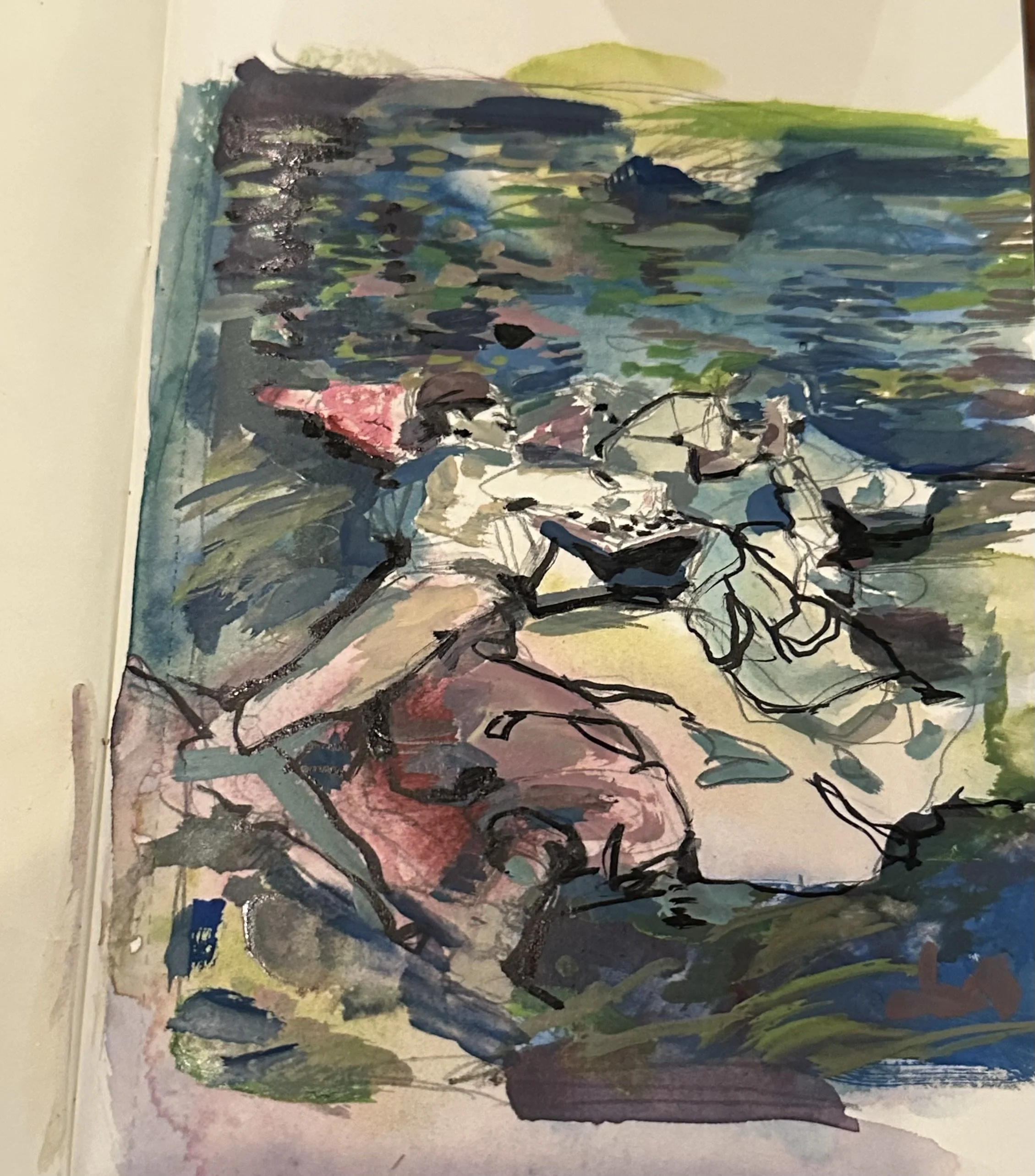 After sketching out the scene I filled it in with watercolors/ gouache. I realized I didn’t have any yellow in my watercolor set on this day, so that limited me a bit in the preliminary sketch.