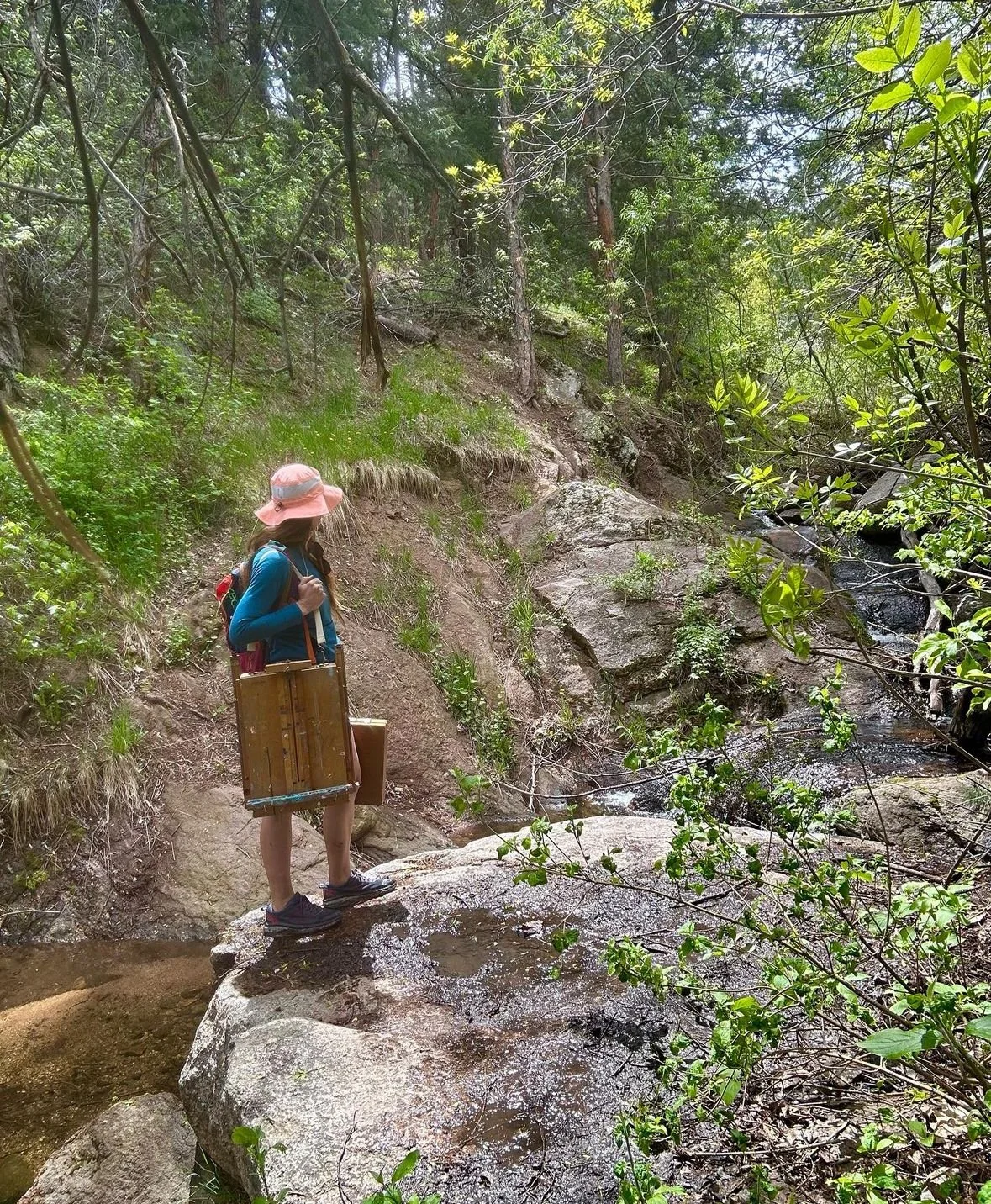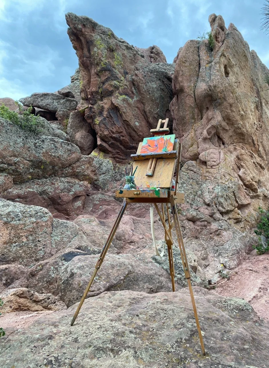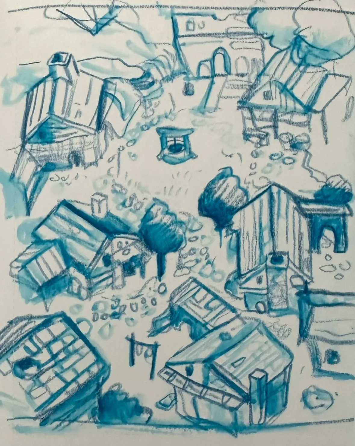 After sketching out the scene I filled it in with watercolors/ gouache. I realized I didn’t have any yellow in my watercolor set on this day, so that limited me a bit in the preliminary sketch.